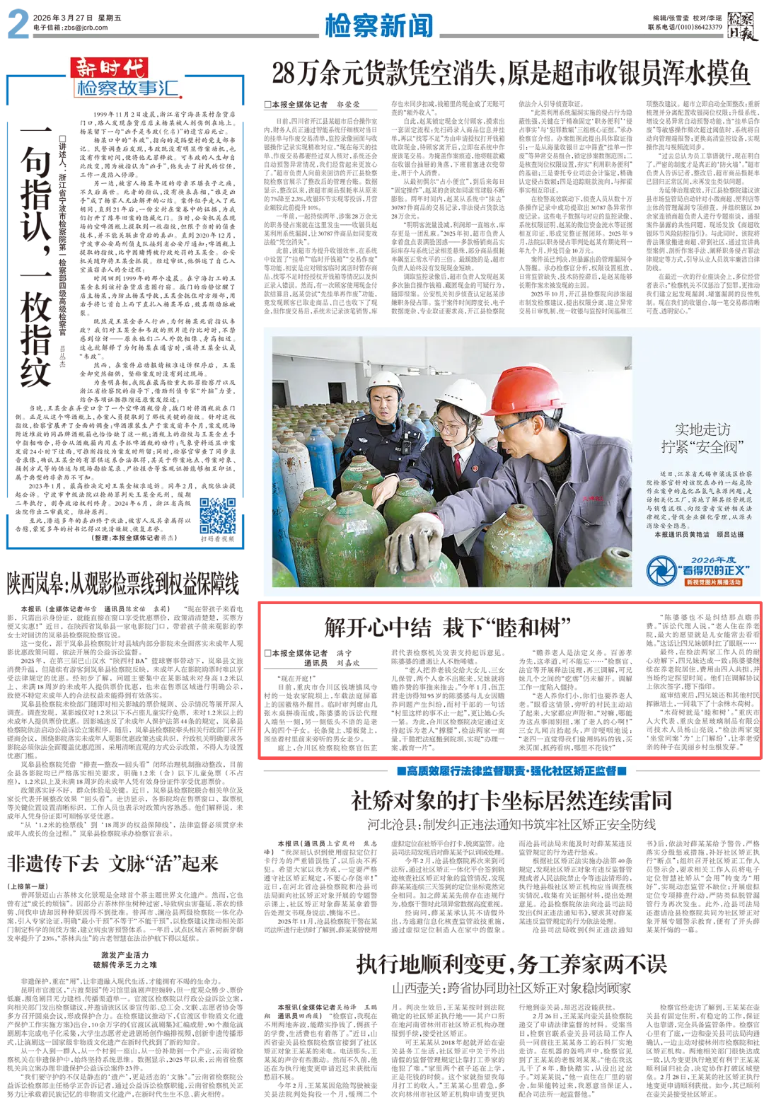 2026年3月27日,《检察日报》第2版刊登《解开心中结 栽下“睦和树”》一文,内容如下: