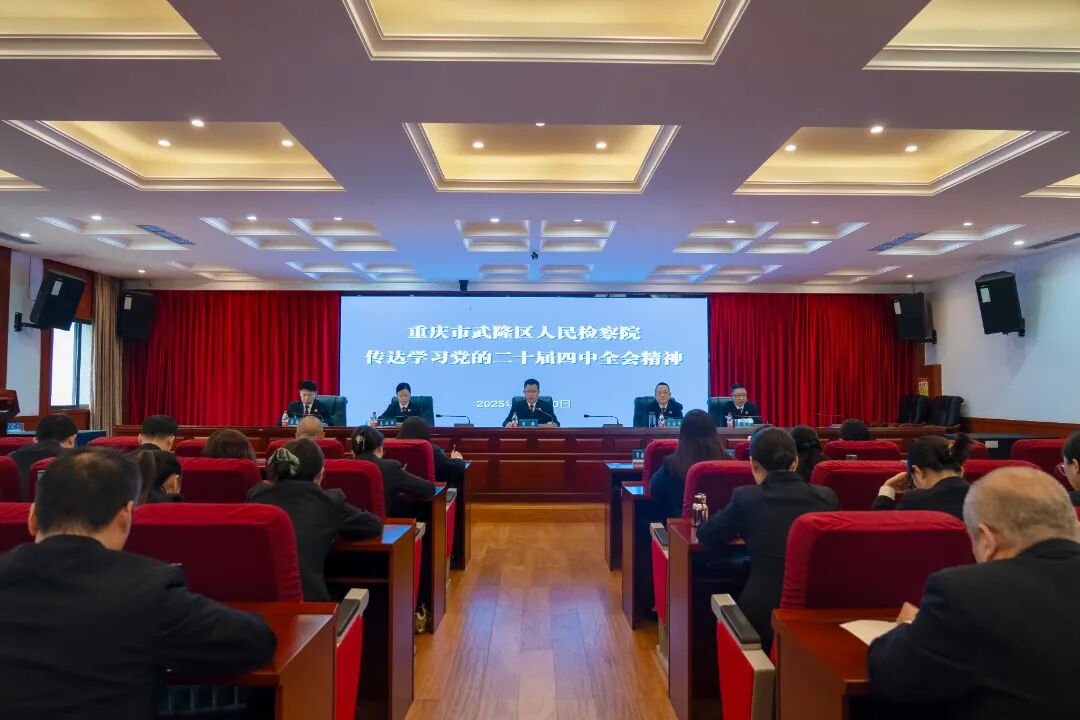 会议强调,要在服务发展大局上精准发力。紧扣全区重点专项工作部署,找准检察履职与服务发展的结合点,在优化营商环境、守护生态环境、增进民生福祉等方面,展现武隆检察新担当、实现新作为。要在强化法律监督上提质增效。聚焦“十五五”规划实施过程中的法治需求,深耕法律监督主责主业,全面提升法律监督质效,让公平正义可感可触。要在锻造过硬队伍上下“真功夫”。始终坚持党对检察工作的绝对领导,从严治检、专业强检,着力锻造一支政治过硬、业务精湛、作风优良的检察铁军,为新时代检察事业发展提供坚实保障。要把学习贯彻全会精神与推动检察工作高质量发展紧密结合,锚定年度目标任务加压奋进,乘势而上、冲刺攻坚,持续巩固武隆检察工作向上向好态势,高质效办好每一个案件,维护社会和谐稳定,全力以赴交出武隆检察工作高质量发展的高分报表。