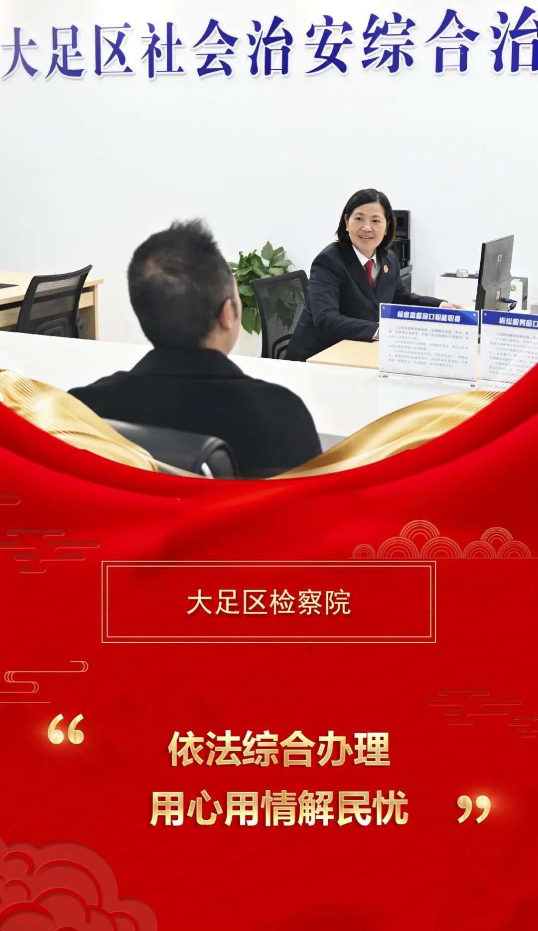 春节归来第一个工作日,大足区检察院干警准时来到区综治中心检察监督岗位,热情接待群众来访咨询。对反映的诉求属于检察机关管辖且符合受理条件的,依法高质效办理;如不属于检察机关管辖或者诉讼监督案件检察监督程序已穷尽的,则向综治中心提出重新分流、转办意见,确保群众诉求“件件有回应、事事有着落”。