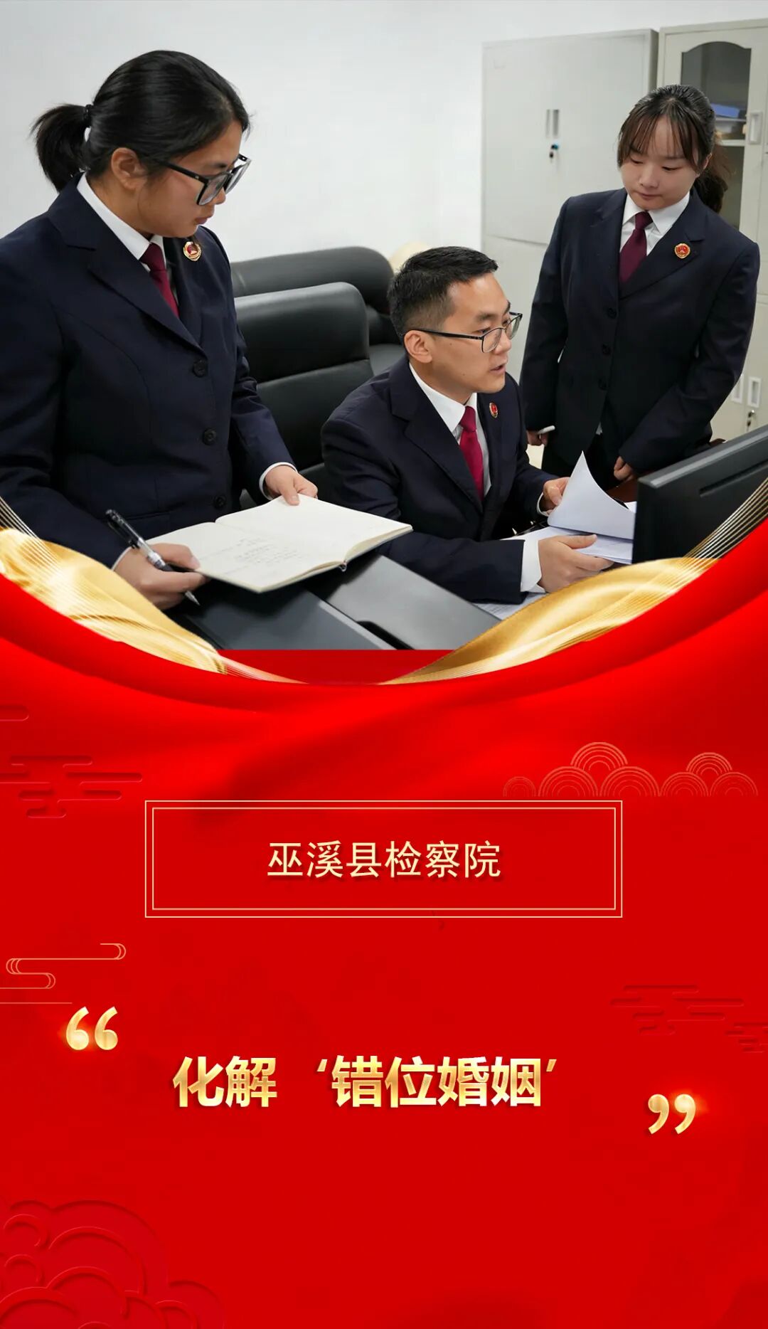 节后首个工作日,巫溪县检察院民事行政检察部门的干警已迅速投入工作状态,围绕一起“错位婚姻”登记案件展开案情研判,推动案件实质性化解。办案组认真比对卷宗材料,围绕身份信息、登记流程等关键环节逐项梳理,同时与辖区某村党支部书记深入沟通,联动核查事实细节,明确行政纠错路径,力争为群众解决“烦心事”,以实际行动彰显检察履职的力度与温度。