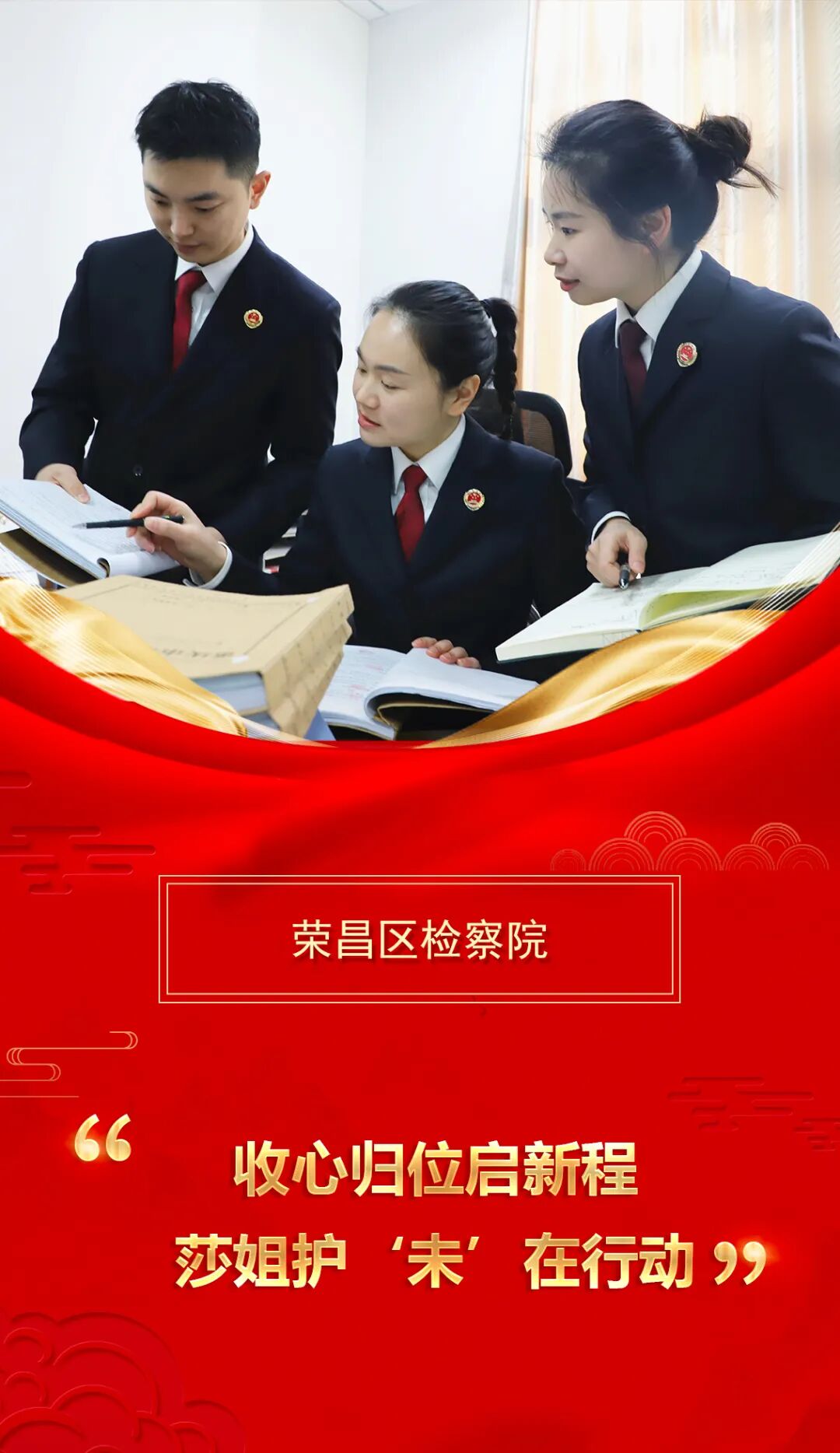春节后上班第一天,荣昌区检察院未成年人检察部门的干警们迅速进入工作状态。一上班,干警们便围坐案头,对一起“零口供”的未成年人案件开展集中研判,并就被害人的后续帮扶方案展开讨论。大家逐一核对证据细节,逐项细化心理疏导、司法救助、转学复学等帮扶措施,以严谨细致的作风,努力为未成年人撑起一片“法治晴空”。