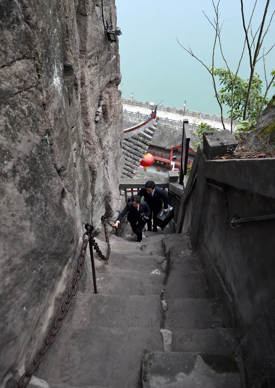 春节前夕,忠县检察院公益诉讼部门检察官张骏一行又登上了被称为“江中盆景”的石宝寨开展“回头看”。这座矗立于长江之中、倚玉印山而建的明朝奇绝古寨,在粼粼波光中,宛如一幅徐徐展开的淡墨山水画。