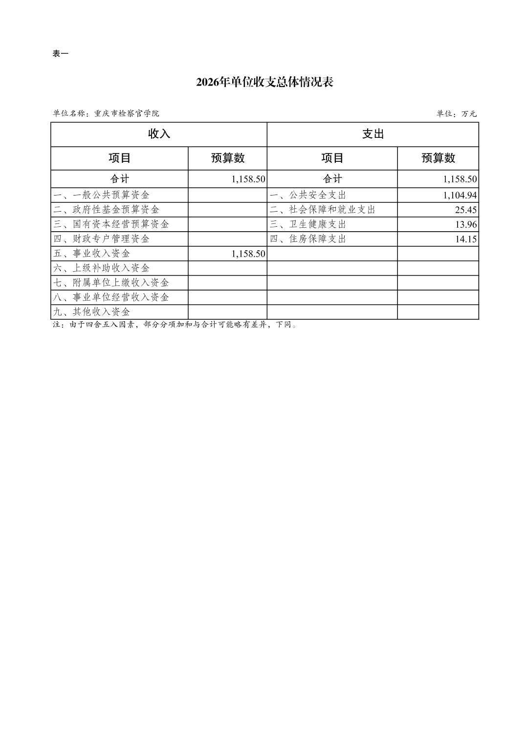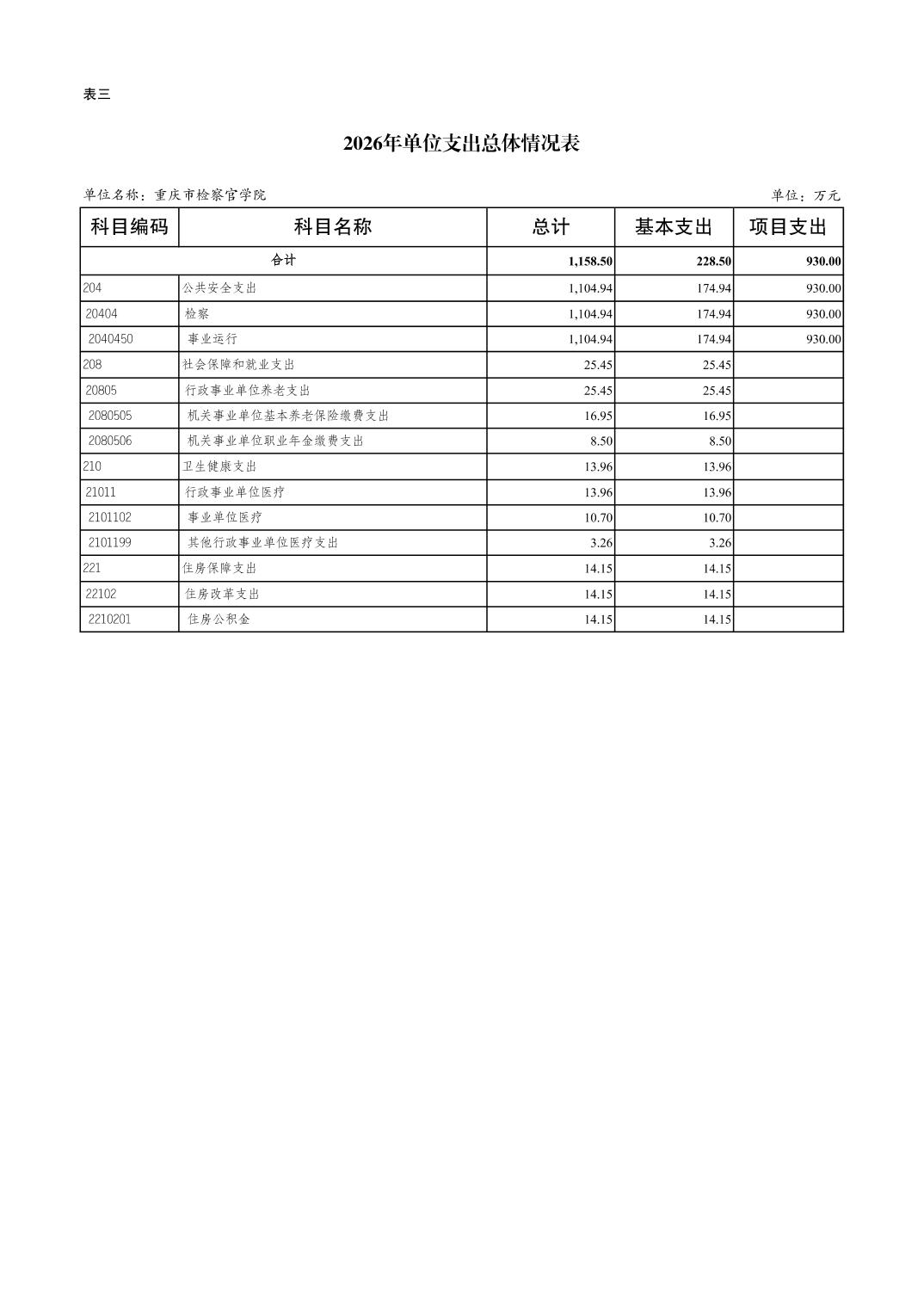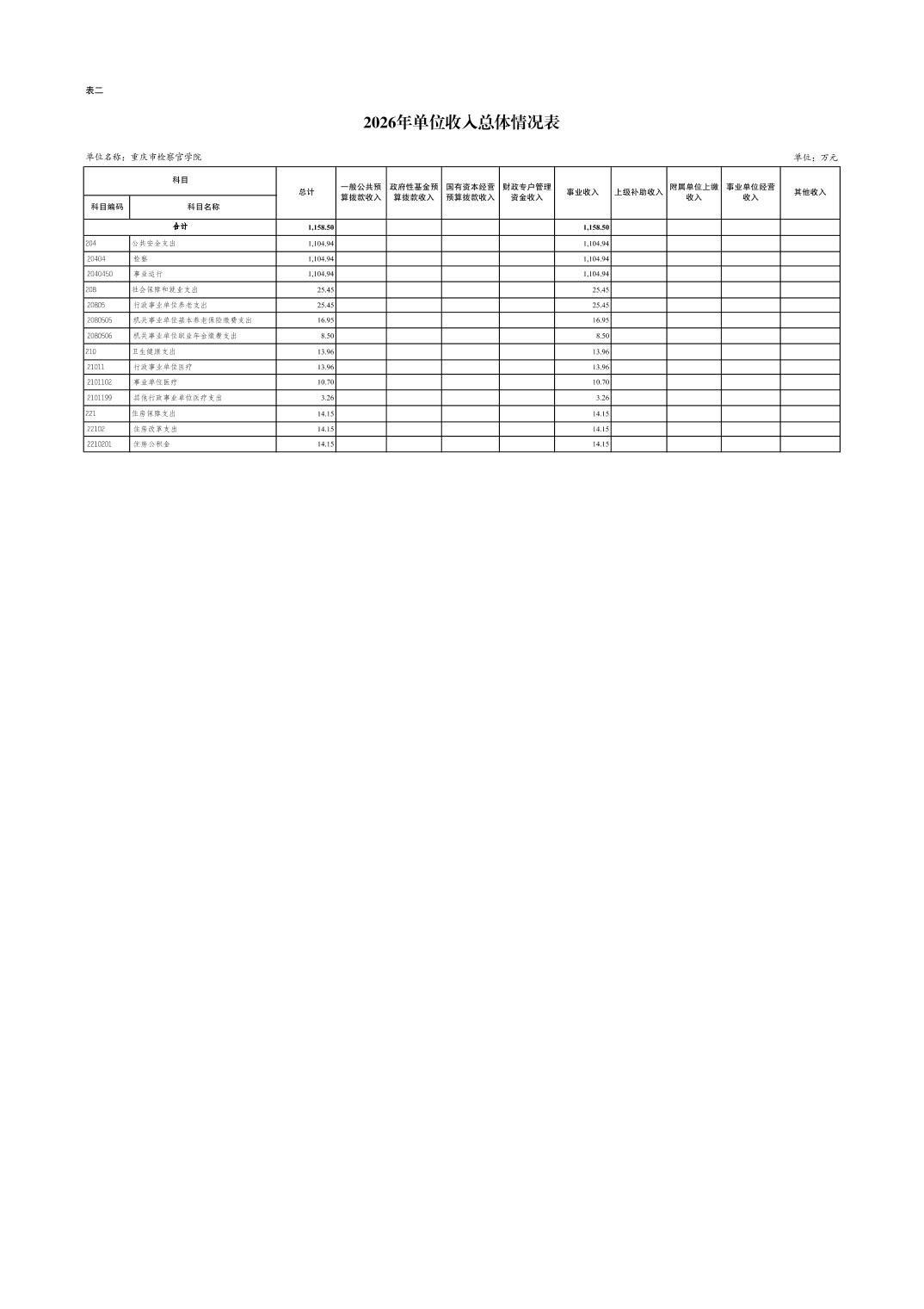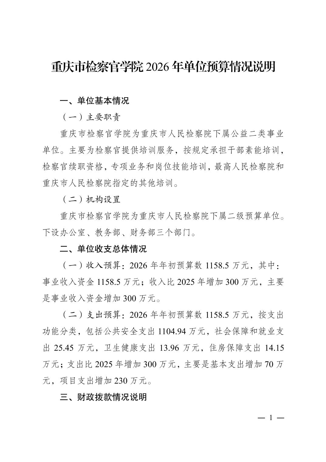 重庆市检察官学院2026年单位预算情况说明